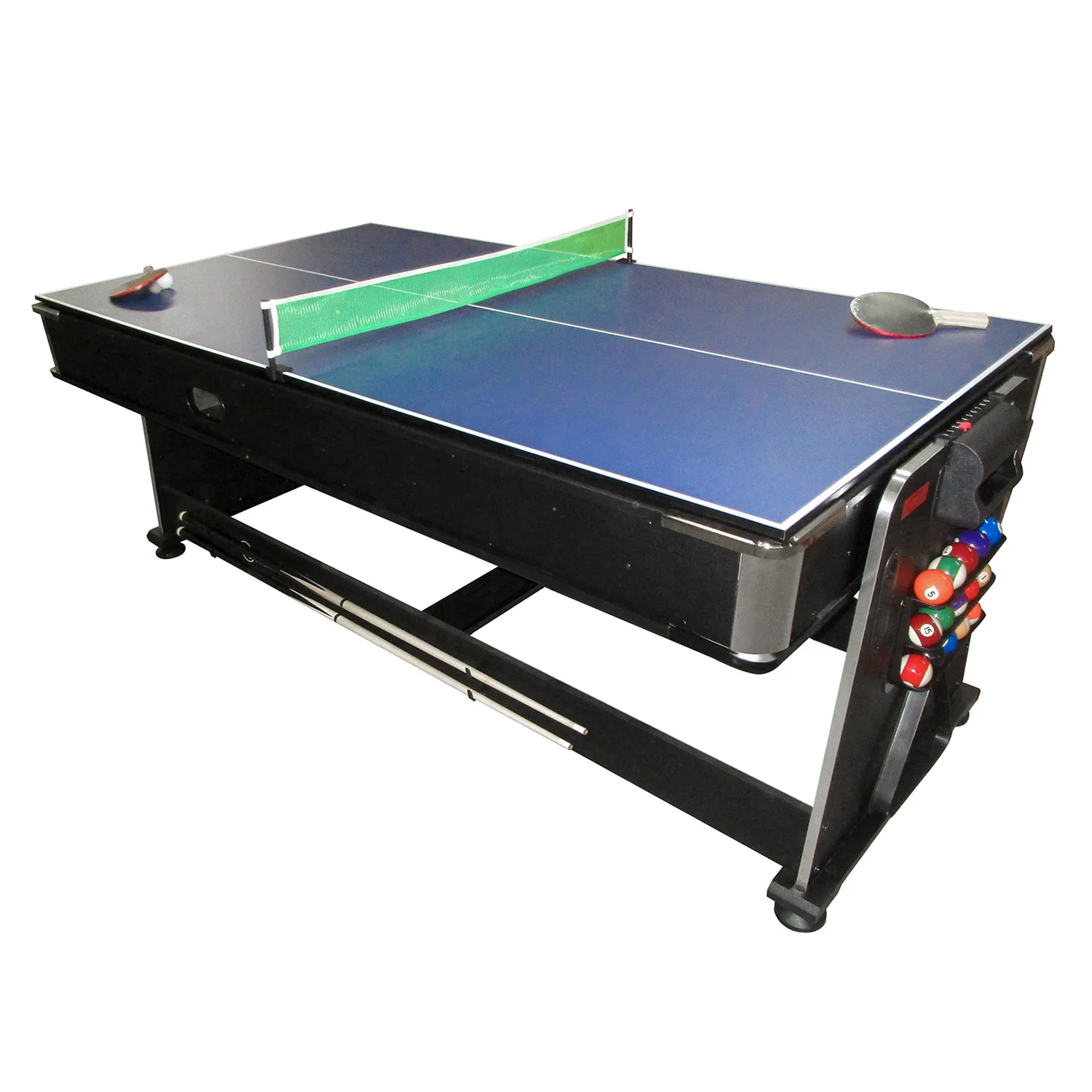 - 2 bolas, 2 raquetas, 1 net, 2 parantes, Tablero de MDF de 213x111x1.5cm en color azul con 2 soportes.