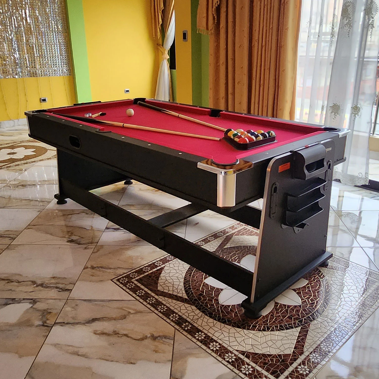 Mesa 4 en 1 Giratorio – Modo Billar Paño Rojo