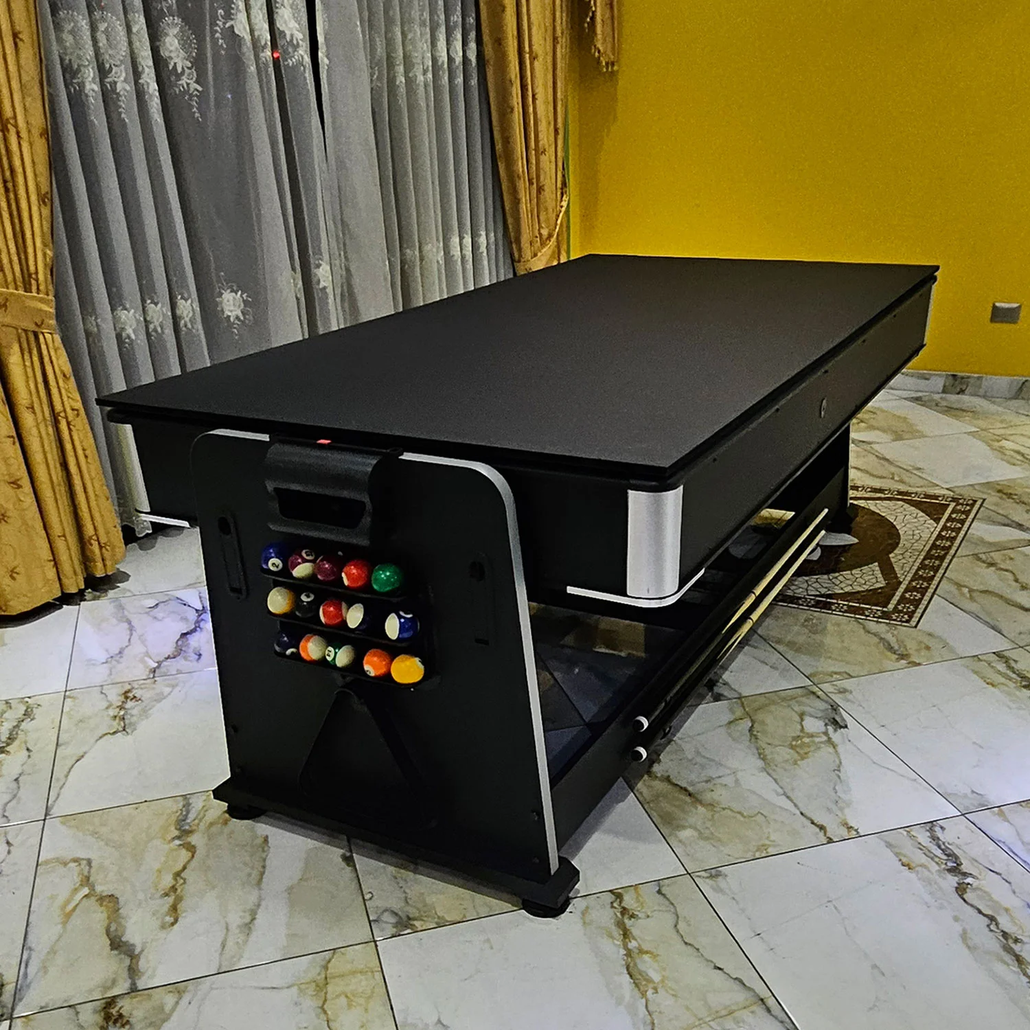• 2 tacos de 1.45m y set de 16 bolas, 1 triangulo, 2 tizas, 1 cepillo.